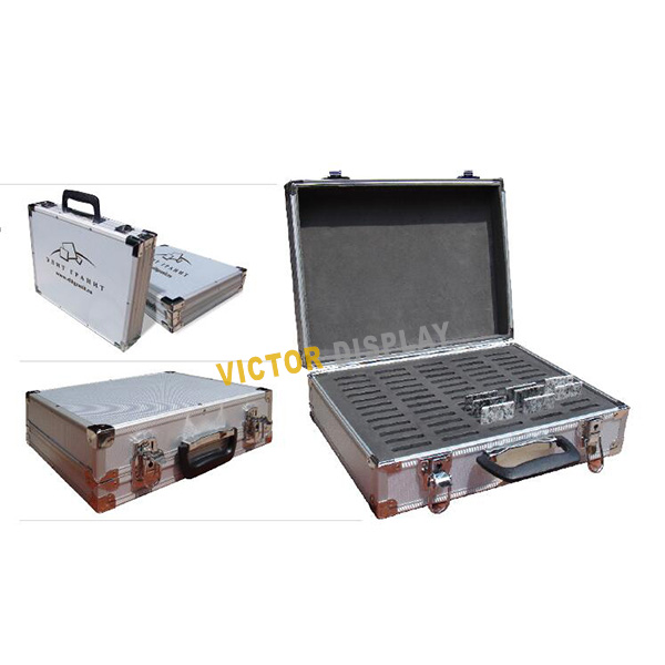Various style of stone metal sample cases for marble samples, granite samples or quartz stone samples. Custom design suit for any size stone samples. Metal stone sample cases is elegant and also durable. Trolley suitcases are perfect for large quantity colors.