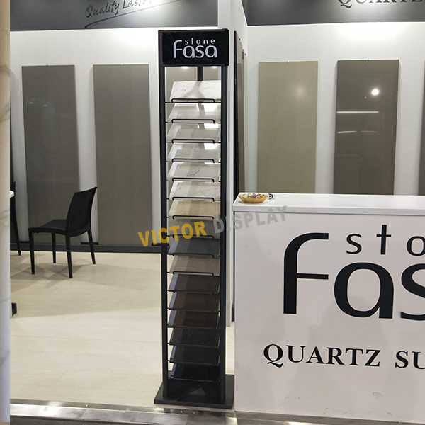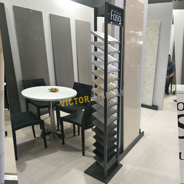 VICTOR DISPLAY’S production lines are designed to display the stone and tile samples in a small space . We manufacture Granite Sample Display Racks,table displays, tile display stands, mosaic display stand, paper sample books, plastic sample books, paper sample boxes, metal display boxes, MDF sample boards, paper sample boards, pvc sample boards according to your sample size and thickness, display as many samples as you need. what we offer is perfect for the show or distributor’s showroom. They have strong flexibility when displaying different kinds of products at different size. It is also easy to move samples. Take out samples or boards when showing or presentation details to customers.