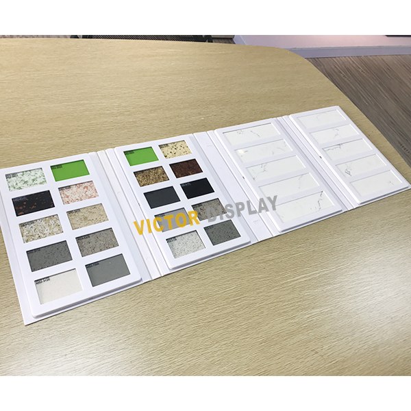 VICTOR DISPLAY’S production lines are designed to display the stone and tile samples in a small space . We manufacture Granite Sample Display Racks,table displays, tile display stands, mosaic display stand, paper sample books, plastic sample books, paper sample boxes, metal display boxes, MDF sample boards, paper sample boards, pvc sample boards according to your sample size and thickness, display as many samples as you need. what we offer is perfect for the show or distributor’s showroom. They have strong flexibility when displaying different kinds of products at different size. It is also easy to move samples. Take out samples or boards when showing or presentation details to customers.