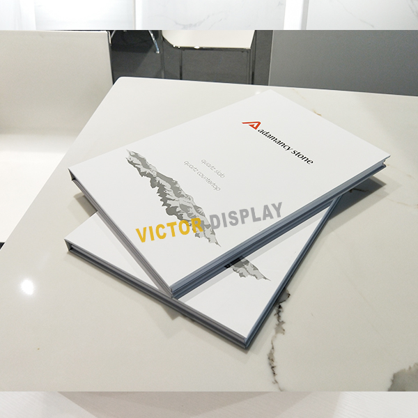 The VS002 Stone Sample Book are popular used for granite, marble, quartz surface exhibition. The advantage of cardbaord sample folder is that it could be custom made as customers’ detail request. It could be 2 pages to 5 pages, the size could be crevice to suit any size and thickness granite, marble, quartz stone, mosaic tiles.