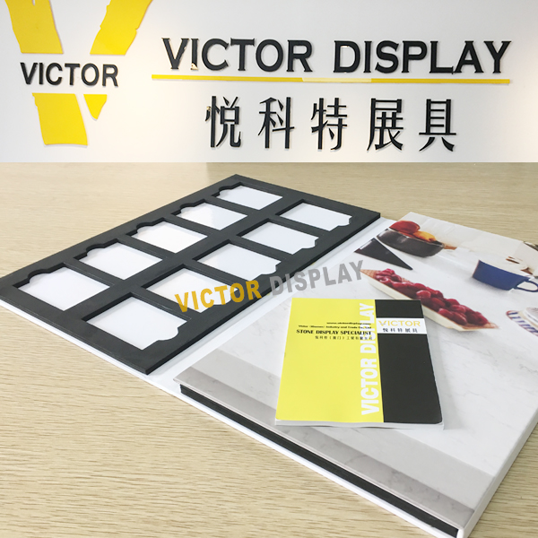 VICTOR DISPLAY’S production lines are designed to display the stone and tile samples in a small space . We manufacture Granite Sample Display Racks,table displays, tile display stands, mosaic display stand, paper sample books, plastic sample books, paper sample boxes, metal display boxes, MDF sample boards, paper sample boards, pvc sample boards according to your sample size and thickness, display as many samples as you need. what we offer is perfect for the show or distributor’s showroom. They have strong flexibility when displaying different kinds of products at different size. It is also easy to move samples. Take out samples or boards when showing or presentation details to customers.