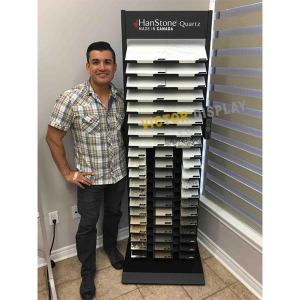 Floor Standing VQ154-M Quartz Stone Display Stand made of 1*2″ metal tube and 1.5 MM thickness metal sheet. Present your quartz stone, granite, marble stone samples on this excellent stone display tower in distributor’s showroom. Victor Display devoted to stone and tile display tools over years, offer variety styles of stone display stand, granite sample display,marble display rack,tile sample box and stone sample binders. We provide excellent quality products with reasonable price, satisfied service and on time delivery.
