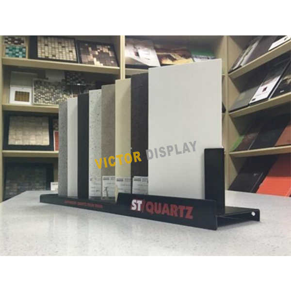 VQ173 Quartz Surfaces Displays is made of metal, it could fit 6 pcs 6”*12″ samples. About surface ,you could choose matte, glossy or sanding , Color could be customized according to your need. Victor Display is a manufacturer of stone and tiles in Xiamen, China. We provide all kind of display stand, display boxes, display books, display boards for granite, marble, quartz stone, tile, mosaic tile samples.
