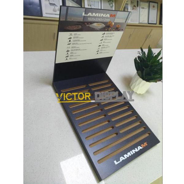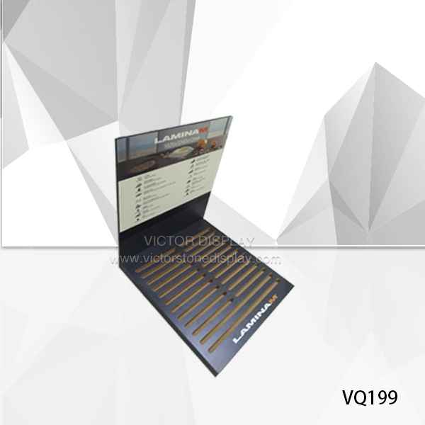 VQ199 Wood Stone Display made of mdf panel with power coated painting or veneer surface. LOGO can be print on the top panel. Victor Display is a manufacturer of stone and tiles display in Xiamen, China. We provide all kind of display stand, display boxes, display books, display boards for granite, marble, quartz stone, tile, mosaic tile samples. Check with our website for other design display stand.