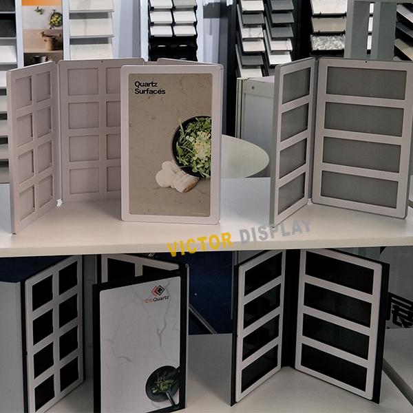 VICTOR DISPLAY’S production lines are designed to display the stone and tile samples in a small space . We manufacture Granite Sample Display Racks,table displays, tile display stands, mosaic display stand, paper sample books, plastic sample books, paper sample boxes, metal display boxes, MDF sample boards, paper sample boards, pvc sample boards according to your sample size and thickness, display as many samples as you need. what we offer is perfect for the show or distributor’s showroom. They have strong flexibility when displaying different kinds of products at different size. It is also easy to move samples. Take out samples or boards when showing or presentation details to customers.