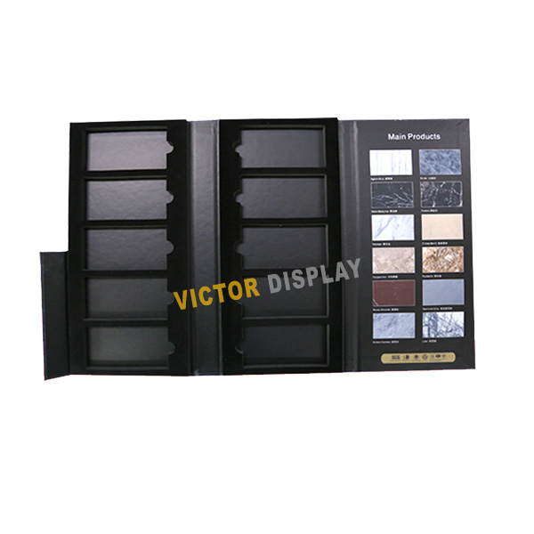 VICTOR DISPLAY’S production lines are designed to display the stone and tile samples in a small space . We manufacture Granite Sample Display Racks,table displays, tile display stands, mosaic display stand, paper sample books, plastic sample books, paper sample boxes, metal display boxes, MDF sample boards, paper sample boards, pvc sample boards according to your sample size and thickness, display as many samples as you need. what we offer is perfect for the show or distributor’s showroom. They have strong flexibility when displaying different kinds of products at different size. It is also easy to move samples. Take out samples or boards when showing or presentation details to customers.