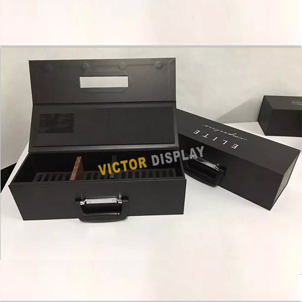 The Sample carry case come in is a great way to extend a brand and add value to the presentation. VS039 Carton Case For Stone Tile is made of paper covered boards with 4 color offset printing in matt or glossy surface. Inside with die-cut foam for present stone and tile samples in the upright position. Magnetic closing flap with two invisible rounded magnets. For such a heavy product to sample, these sturdy boxes all come complete with a secure closure and handle for carrying like a briefcase!