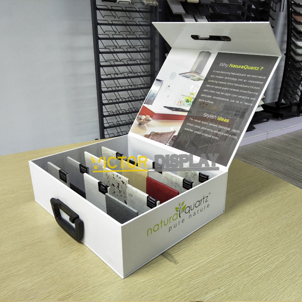 VICTOR DISPLAY’S production lines are designed to display the stone and tile samples in a small space . We manufacture Granite Sample Display Racks,table displays, tile display stands, mosaic display stand, paper sample books, plastic sample books, paper sample boxes, metal display boxes, MDF sample boards, paper sample boards, pvc sample boards according to your sample size and thickness, display as many samples as you need. what we offer is perfect for the show or distributor’s showroom. They have strong flexibility when displaying different kinds of products at different size. It is also easy to move samples. Take out samples or boards when showing or presentation details to customers.