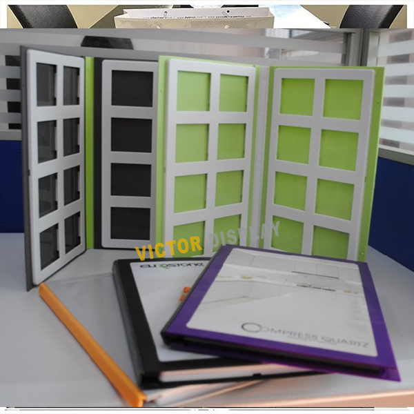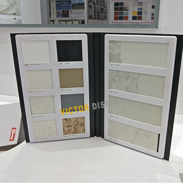 VICTOR DISPLAY’S production lines are designed to display the stone and tile samples in a small space . We manufacture Granite Sample Display Racks,table displays, tile display stands, mosaic display stand, paper sample books, plastic sample books, paper sample boxes, metal display boxes, MDF sample boards, paper sample boards, pvc sample boards according to your sample size and thickness, display as many samples as you need. what we offer is perfect for the show or distributor’s showroom. They have strong flexibility when displaying different kinds of products at different size. It is also easy to move samples. Take out samples or boards when showing or presentation details to customers.