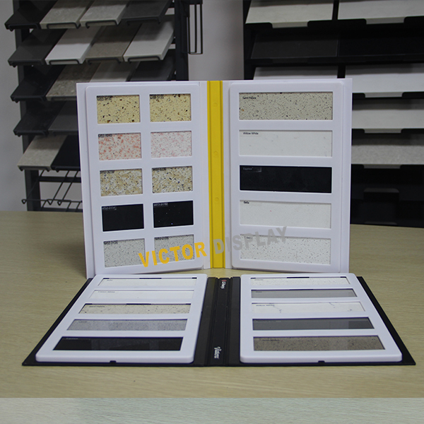 VICTOR DISPLAY’S production lines are designed to display the stone and tile samples in a small space . We manufacture Granite Sample Display Racks,table displays, tile display stands, mosaic display stand, paper sample books, plastic sample books, paper sample boxes, metal display boxes, MDF sample boards, paper sample boards, pvc sample boards according to your sample size and thickness, display as many samples as you need. what we offer is perfect for the show or distributor’s showroom. They have strong flexibility when displaying different kinds of products at different size. It is also easy to move samples. Take out samples or boards when showing or presentation details to customers.