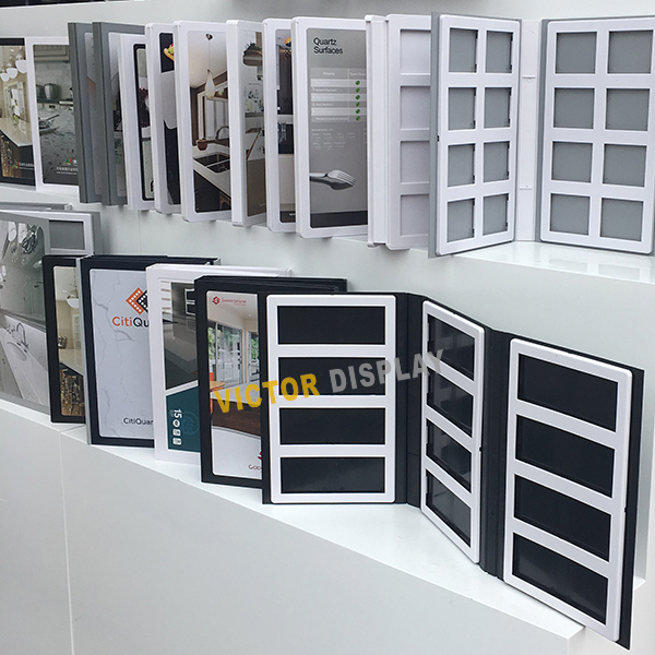 VICTOR DISPLAY’S production lines are designed to display the stone and tile samples in a small space . We manufacture Granite Sample Display Racks,table displays, tile display stands, mosaic display stand, paper sample books, plastic sample books, paper sample boxes, metal display boxes, MDF sample boards, paper sample boards, pvc sample boards according to your sample size and thickness, display as many samples as you need. what we offer is perfect for the show or distributor’s showroom. They have strong flexibility when displaying different kinds of products at different size. It is also easy to move samples. Take out samples or boards when showing or presentation details to customers.
